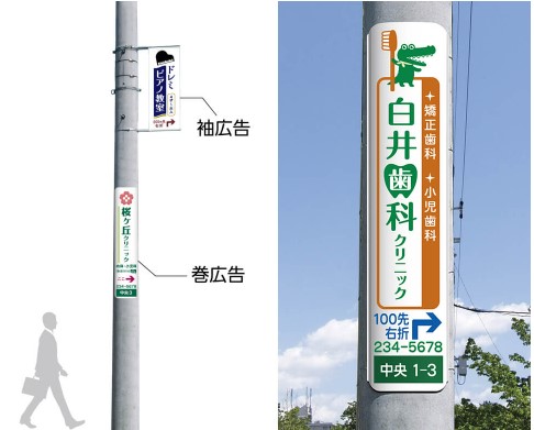 分かりづらい立地を街中に立つ電柱に案内看板をつけて会社やお店をPRしたい